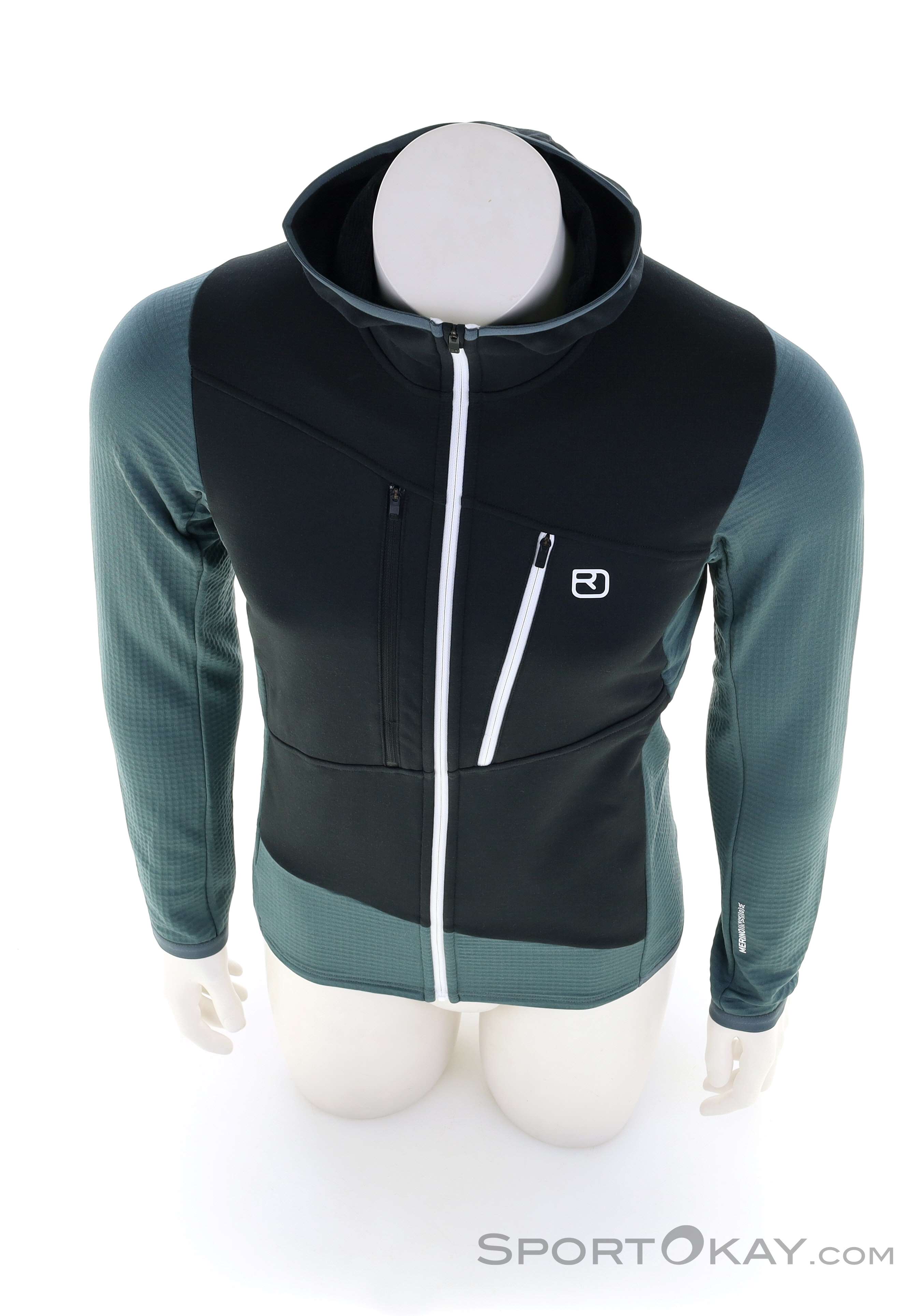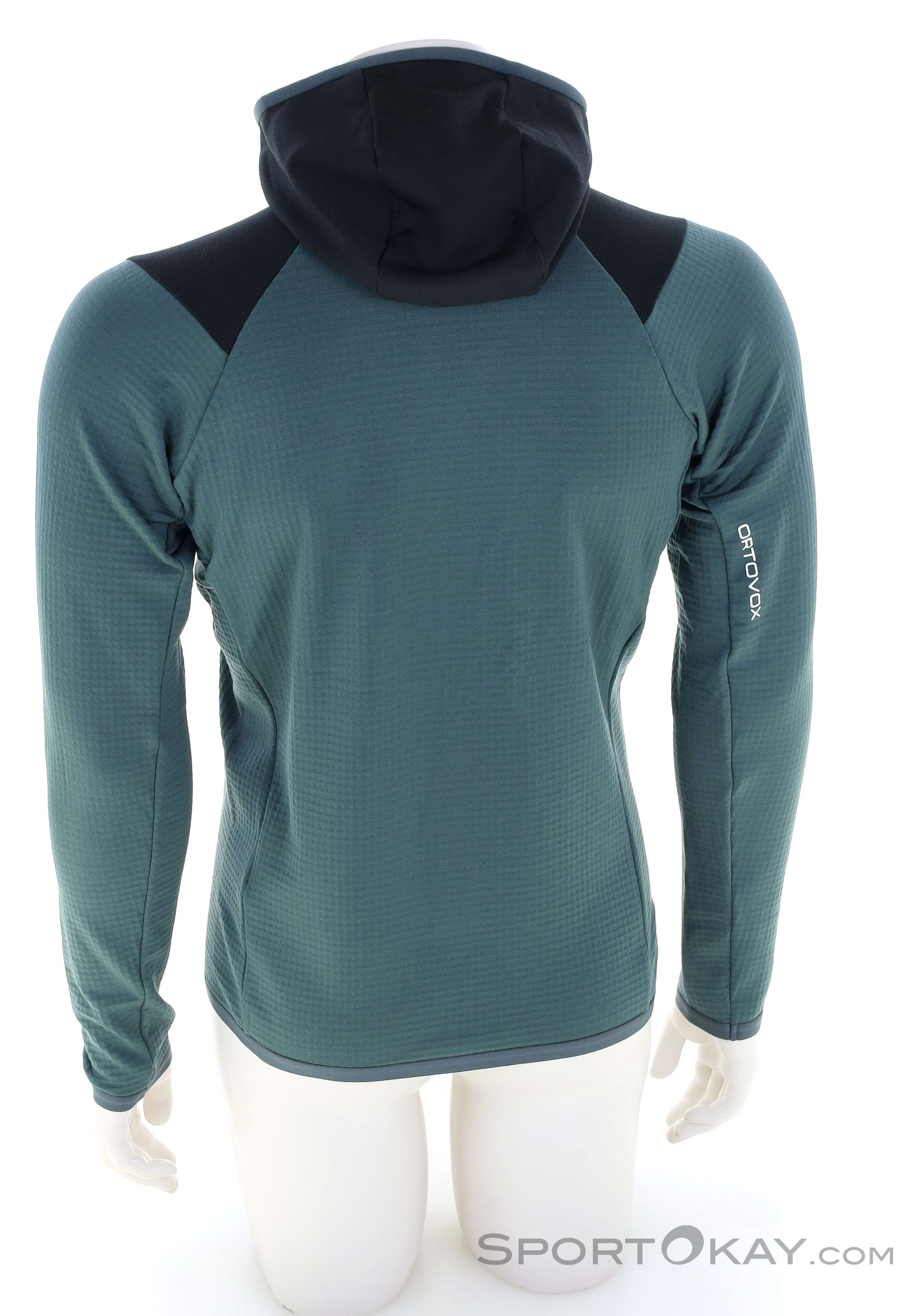 Das MERINO FLEECE GRID Material bindet in seiner feinen Waffelstruktur warme Luft auf der Innenseite und gibt Feuchtigkeit nach außen ab, sodass der Hoody einerseits angenehm wärmt, andererseits aber auch schnell trocknet und äußerst atmungsaktiv ist.